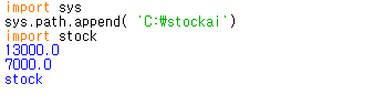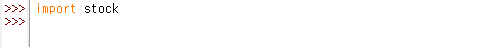 위 코드를 작성하면 이제 import stock 실행되는 것을 확인 할 수 있습니다. 이제 우리가 만든 함수를 실행시켜봅시다.