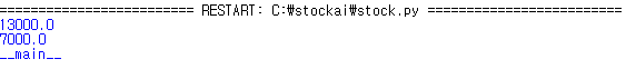 [Run] -> [Phyton Shell] 을 실행해서 임포트를 해보면 __name__이 stock으로 되어 있는 신기한 현상을 발견할 수 있습니다. 그러면 우리는 이제 테스트 할때만 __main__으로 나오게 하면 되겠다는 생각을 할 수 있게 됩니다.