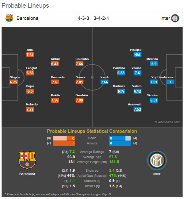 - 라우타로 마르티네스: 팀의 주득점원으로서 바르셀로나 수비진을 상대로 결정적인 역할을 할 것으로 기대됩니다.