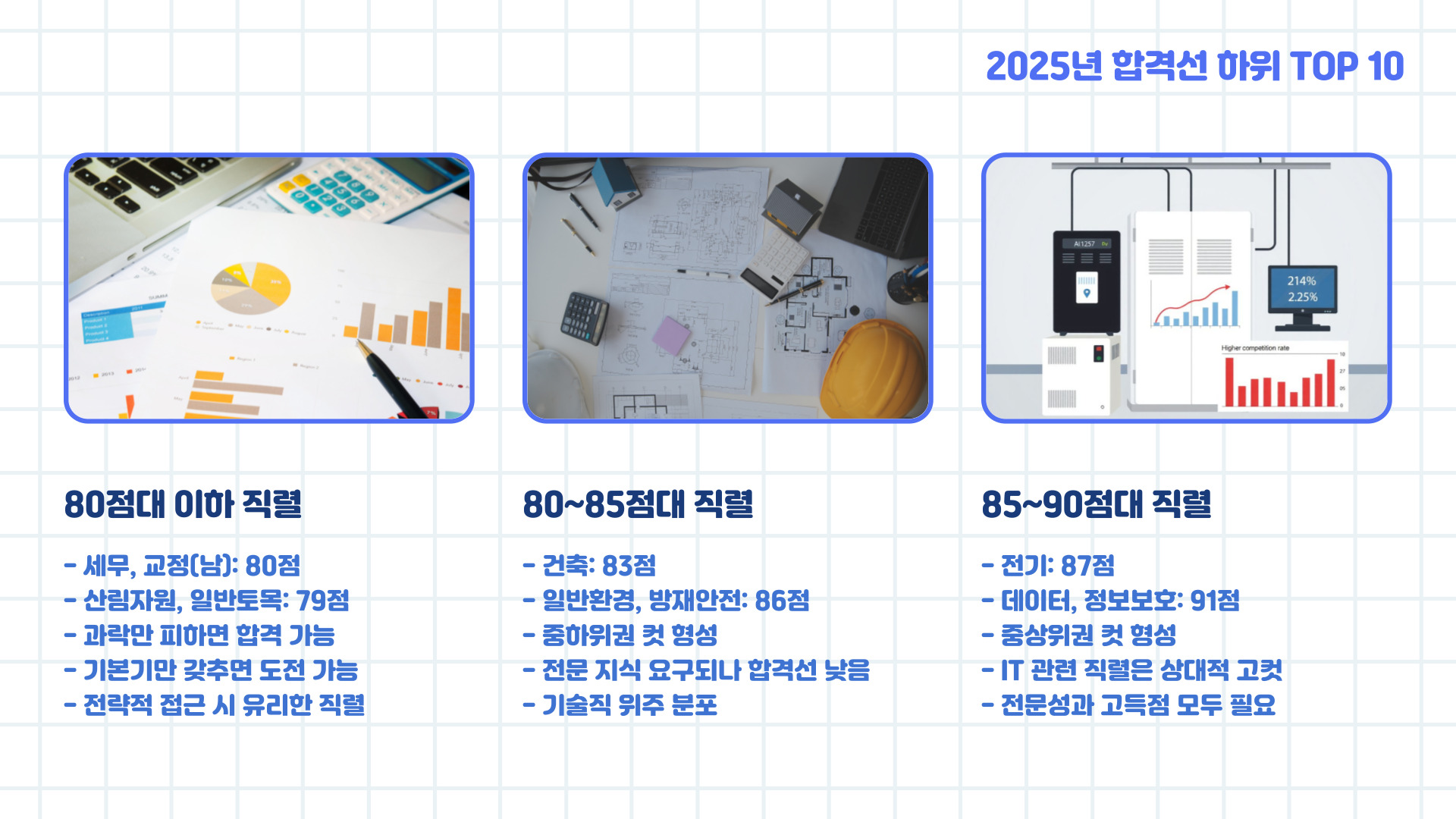 - 기술직은 전문성 기반 출제, 문이과 전환 가능한 과목 선택 시 유리
