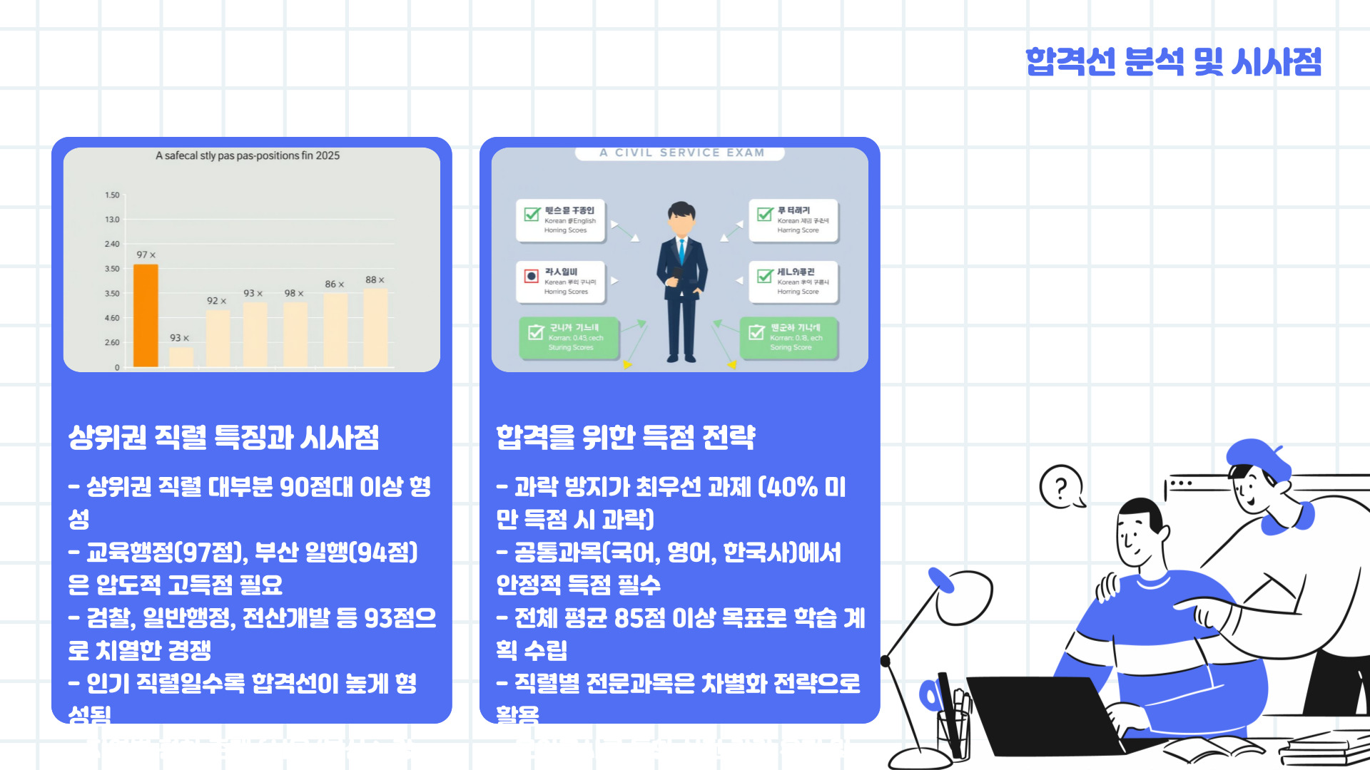 - 교육행정, 일반행정 등은 고득점자가 많아 철저한 실력 기반 접근 필요
